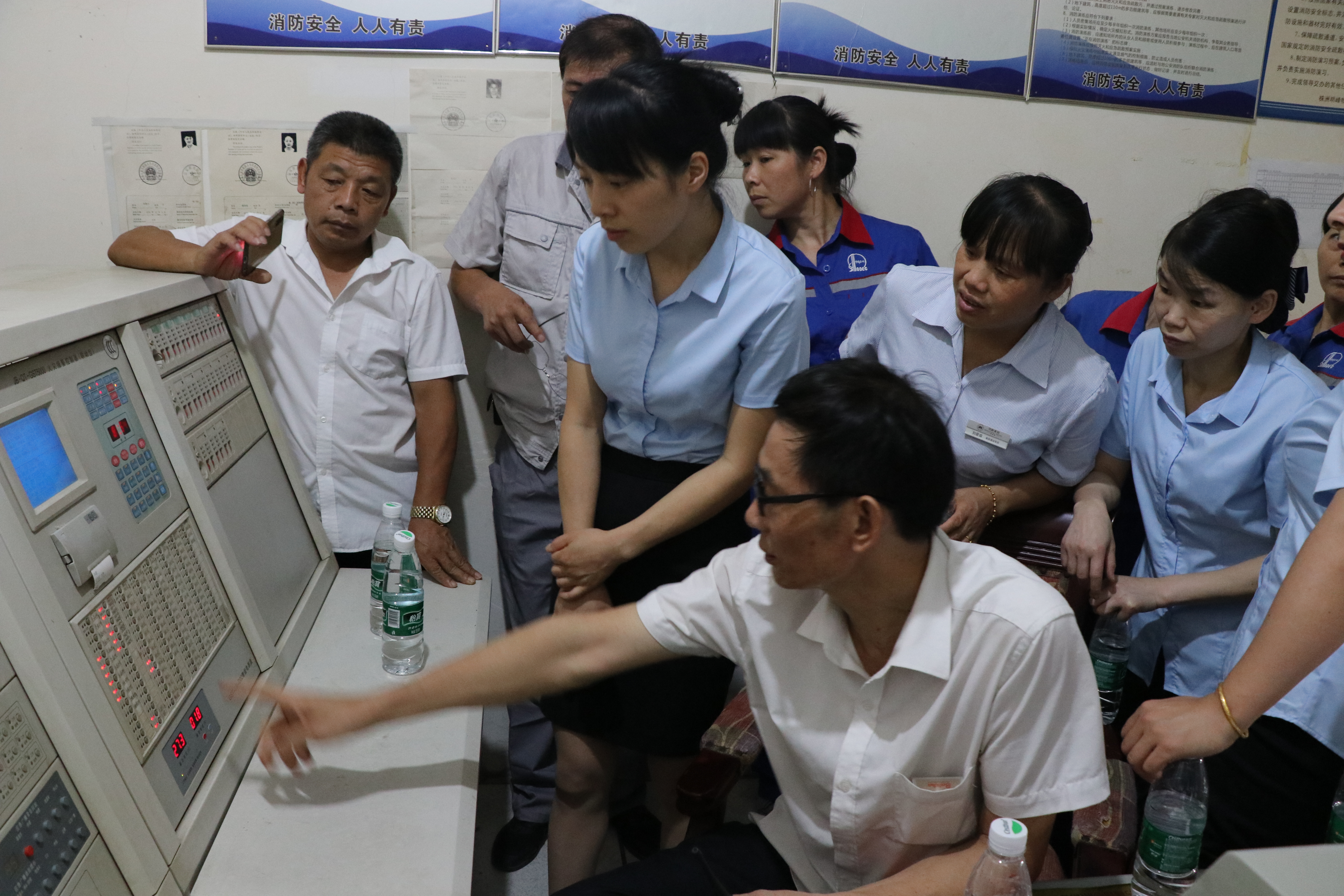在明峰銀座物管處監(jiān)控室學(xué)習(xí)正確操作消防設(shè)備及消防主機(jī)聯(lián)動(dòng)控制。安全指導(dǎo)員仔細(xì)講解原理和流程步驟,讓每位員工都能理解并在主機(jī)設(shè)備上實(shí)際操作。