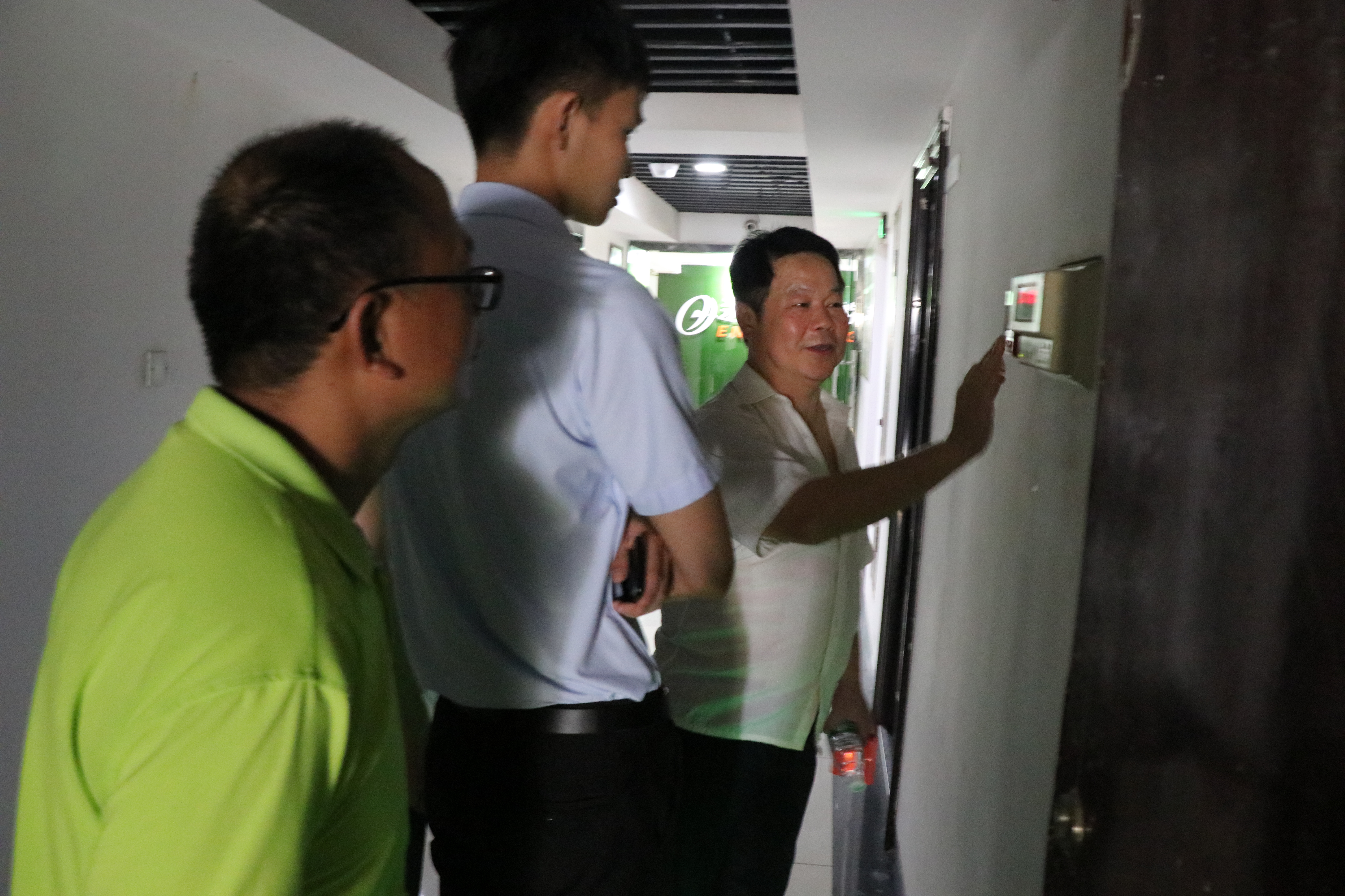安全指導(dǎo)員詳細(xì)講解風(fēng)機(jī)聯(lián)動(dòng)和報(bào)警系統(tǒng)聯(lián)動(dòng)的操作流程并操作演練,讓每位員工都知道在發(fā)生火災(zāi)時(shí)正確逃生的方法。