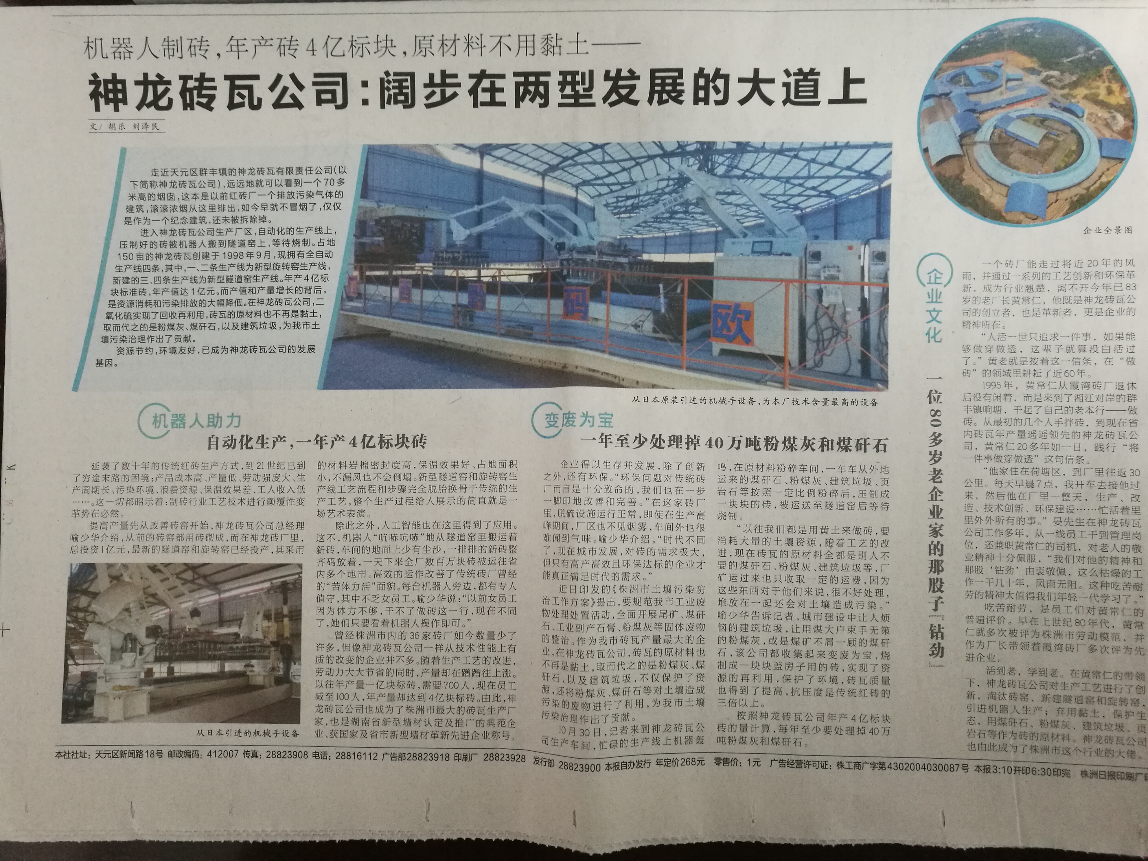 2017年11月7日株洲日報 報道神龍磚瓦公司:闊步在兩型發(fā)展的大道上